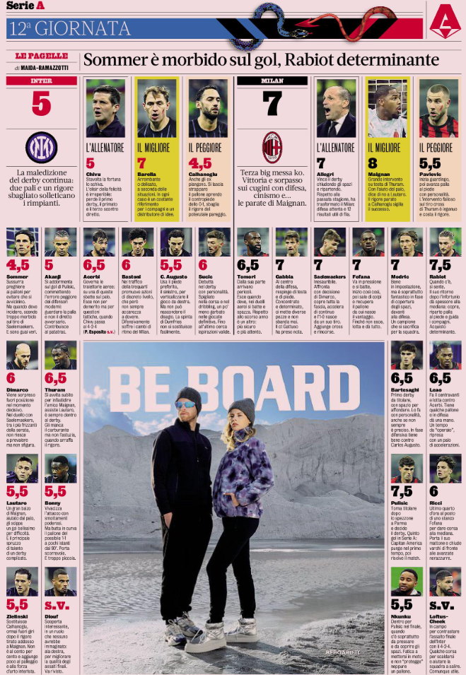 AC Milan's duo, on the other hand, Fikayo Tomori and Rafael Leao, could have done better and were only shown ratings set at 6.5. Davide Bartesaghi, the AC Milan youth academy product who started the derby for the first time, was also granted the same rating.
